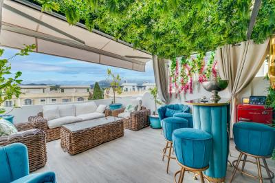 A standout feature is the top terrace, transformed into a sophisticated bar and chill-out space for entertaining. Residents can enjoy access to two outdoor pools, an indoor pool, and the added security of a gated community. The property also includes underground parking for extra convenience.