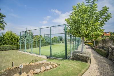 Set within an exclusive development with 24-hour security, four outdoor pools, a heated pool, a gym, a padel court, etc.