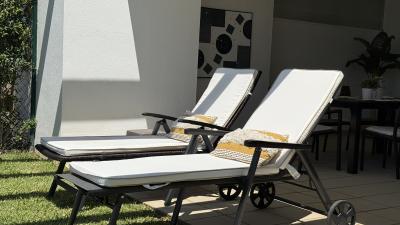 The living area flows seamlessly onto the apartment's standout feature: a stunning terrace and garden. Partly covered, this outdoor space is perfect for al fresco dining, relaxing in the Spanish sun, or simply enjoying the serene surroundings.