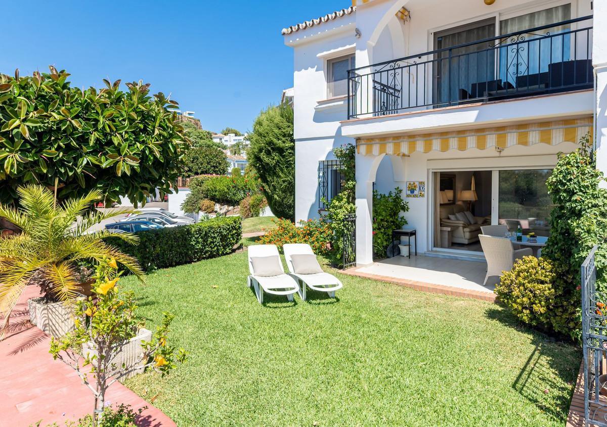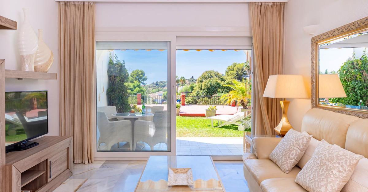 Exquisite One Level Garden Apartment with a high interior specification offering open tropical views situated El Paraiso Alto Benahavis, enviably positioned within a prestigious Andalucian community consistently chosen by industry professionals as a top recommended golf and residential choice, designed within outstanding tropical gardens offering direct access onto the famous El Paraiso 18 hole golf course green. The property benefits from corner positioning within immaculately maintained flat tropical palm and floral gardens offering open tropical views with distant golf and sea views from the garden.