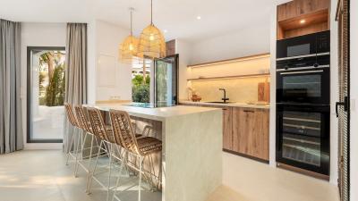 Located within the exclusive beachfront residential enclave of Golden Beach in Elviria, this fully refurbished ground-floor apartment offers the true lifestyle of modern Mediterranean living. Facing west, it enjoys beautiful sunsets, creating a warm and welcoming atmosphere both inside and out on the terrace.