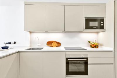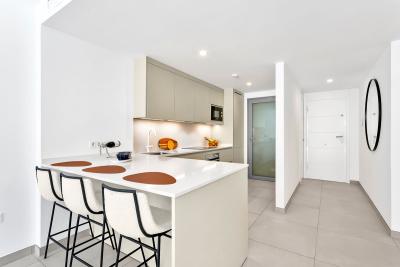 The apartment offers 2 bedrooms and 2 bathrooms, with a bright open-plan kitchen, dining, and living area that flows directly onto a private terrace and garden. Both the living room and the master bedroom have direct access to the outdoor space, creating a lovely indoorâoutdoor living feel. There is plenty of storage with built-in wardrobes, and the master bathroom is en-suite and includes a bathtub.