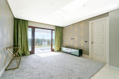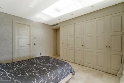 The property spans an impressive 197m², with 117m² dedicated to its meticulously designed interior and private garden. The apartment features three spacious bedrooms and three modern bathrooms, all finished to an excellent standard.