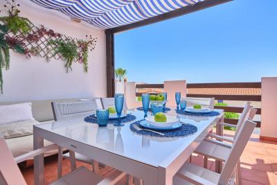 Vistalmar, La Duquesa. Beautiful apartment set within this secure and peaceful Andalusian style gated community with lush tropical gardens, four swimming pools and boasting panoramic sea and mountain views from its elevated position.