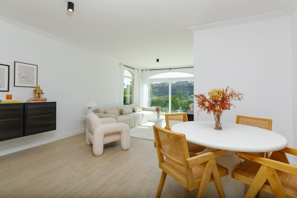 This stunning ground floor corner apartment is located in the prestigious area of La Quinta, BenahavÃs. Fully renovated to a high standard, it offers 3 bedrooms and 3 bathrooms across 123 m² of built space. The west-facing orientation ensures abundant natural sunlight throughout the day. The apartment features a brand-new kitchen, modern flooring, fully updated bathrooms, and stylish decor. A spacious private garden is perfect for relaxing or entertaining, with elevated panoramic mountain views enhancing the outdoor experience.