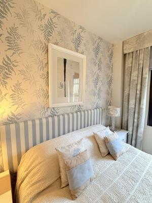 The property includes two spacious double bedrooms. The master suite features an ensuite bathroom with bathtub and direct garden access, while a second full bathroom serves the additional bedroom and guests. Ample built-in wardrobe space throughout ensures excellent storage .