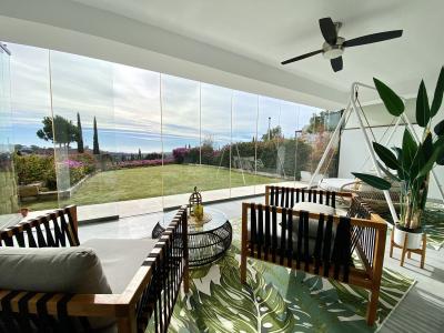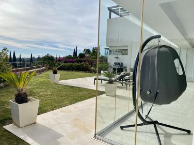 Spanning over 212m2 of meticulously designed living space, the apartment boasts expansive terraces that provide captivating views of both the surrounding landscape and the golf course,and sea. The outdoor experience is further enhanced by two private, generously sized gardens adorned with olive and lemon trees.