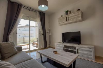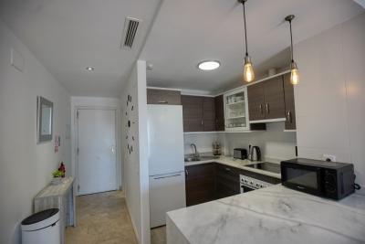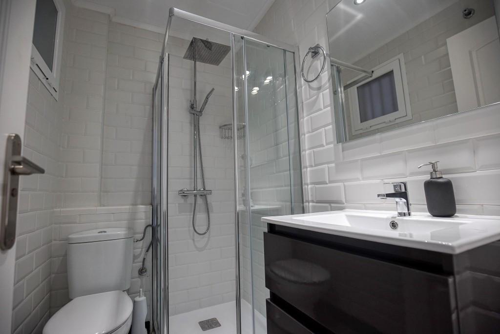 The master bedroom features an en-suite bathroom and direct access to the terrace, while the second bedroom is ideal for guests or a home office. Both bedrooms are equipped with built-in wardrobes.
