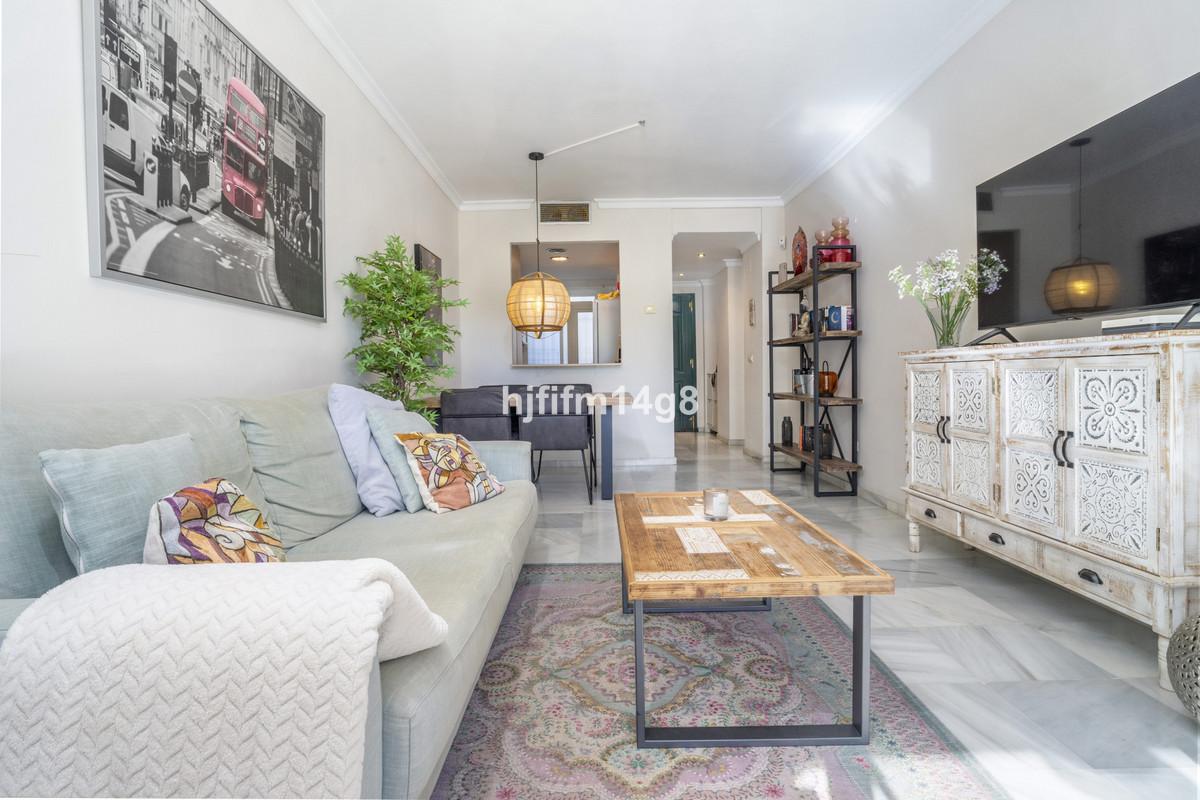 This is a 2-bedroom ground floor garden apartment. The apartment is in good condition with original kitchen which can easily be opened up if wished, dining and lounge area with direct access to the terrace. The terrace is an excellent spot as it offers full privacy and leads to the fully private garden overlooking La Concha mountain and the communal pool area. The master bedroom is spacious with en-suite bathroom and direct access to terrace. The guest bedroom is also of a good size and has a separate bathroom.
