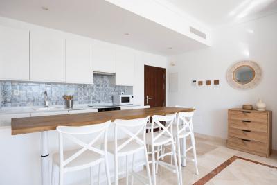 The penthouse features an impressive two-level terrace layout, culminating in a spectacular rooftop solarium that serves as a private sanctuary for sunbathing, entertaining, or simply enjoying the uninterrupted views of the Mediterranean. From sunrise to sunset, the south-facing orientation ensures abundant natural light throughout the home as well as warm, sunlit terraces all day long.
