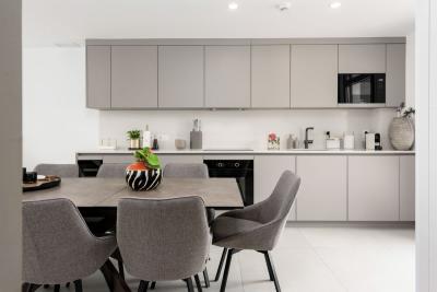 ⢠Bright and spacious open-plan living area, seamlessly connecting the kitchen and lounge to the terrace.
