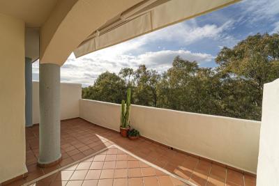 Bright and recently renovated 123 m² penthouse in the quiet area of Elviria, Marbella. The property offers two large bedrooms, two spacious bathrooms, a bright living area, fully equipped kitchen, and a private terrace with side sea and forest views.... Bright and recently renovated 123 m² penthouse in the quiet area of Elviria, Marbella. The property offers two large bedrooms, two spacious bathrooms, a bright living area, fully equipped kitchen, and a private terrace with side sea and forest views. Features include window blinds and an electric awning. Located in a well-maintained complex with six swimming pools and lush gardens. Includes underground parking. Sold furnished.