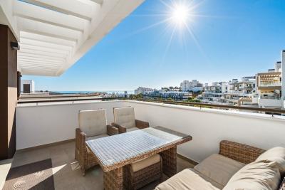 Excellent corner penthouse with 3 bedrooms and panoramic views of the sea and the park, for sale in Puerto de Estepona.