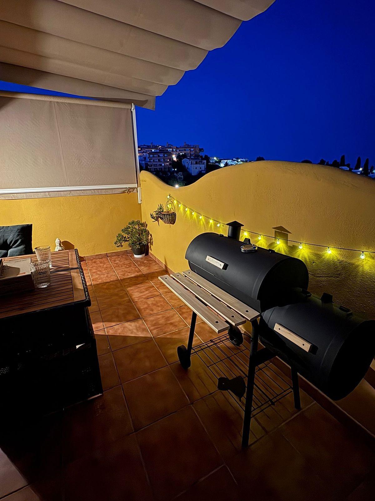 The property features 2 bedrooms and 1 bathroom, and stands out for its spacious 20 m² terrace, offering pleasant open views of the sea and the mountains, perfect for relaxing and enjoying the Costa del Sol lifestyle.