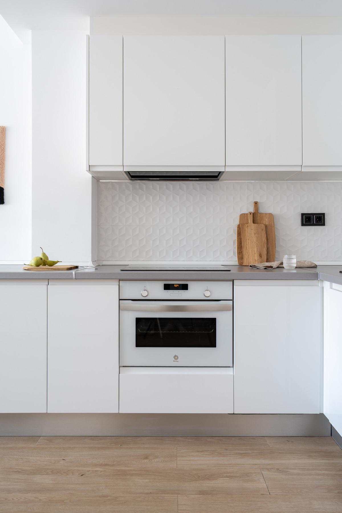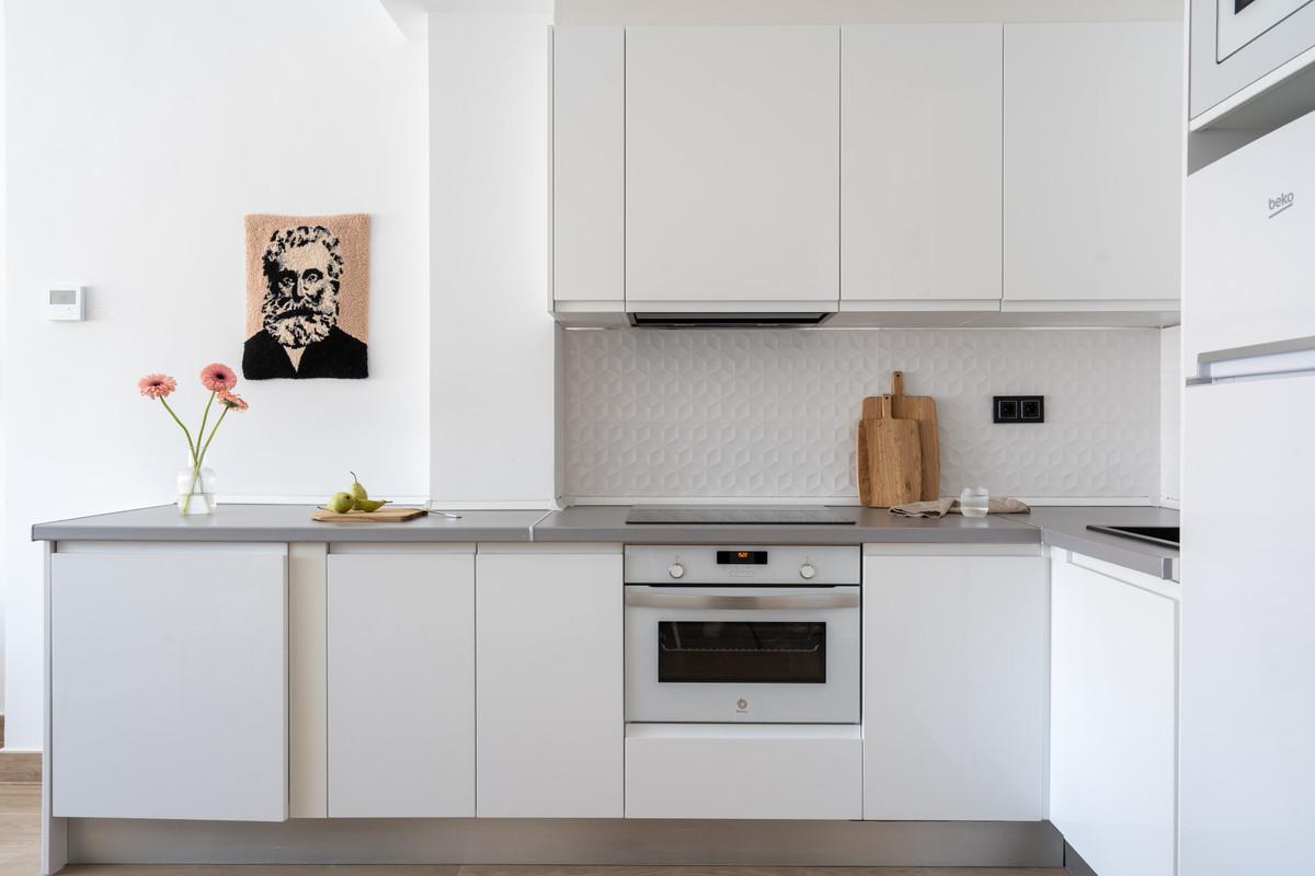 Natural light pours in throughout the apartment, enhancing the fresh, contemporary feel. The well-equipped kitchen is practical for everyday living, while the layout includes two comfortable bedrooms and one bathroom. Both bedrooms feature generous fitted wardrobes.