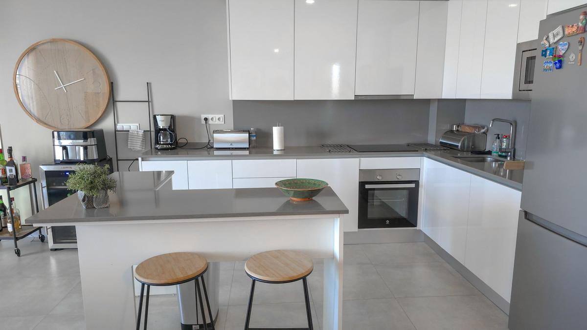 Located in an elevated position above La Cala de Mijas, this penthouse offers sweeping views over the town, surrounding landscapes, and the Mediterranean. The interior layout is designed with open-plan living, generous windows that flood the rooms with natural light, and seamless access to the large terraces. The spacious kitchen and dining area connect effortlessly with the lounge, creating an ideal space for both everyday life and entertaining.