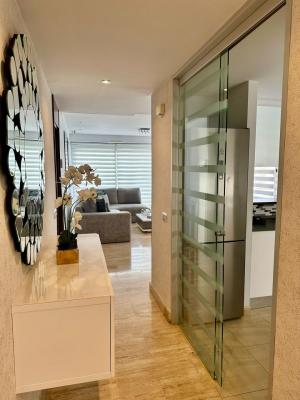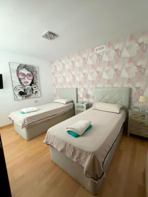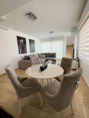 Distributed over two levels, the property offers 2 bedrooms, 2 bathrooms (including one en suite), a bright living-dining area, and a fully equipped kitchen. It also features three private terraces, including a large solarium with a comfortable sitting area perfect for relaxing or entertaining.