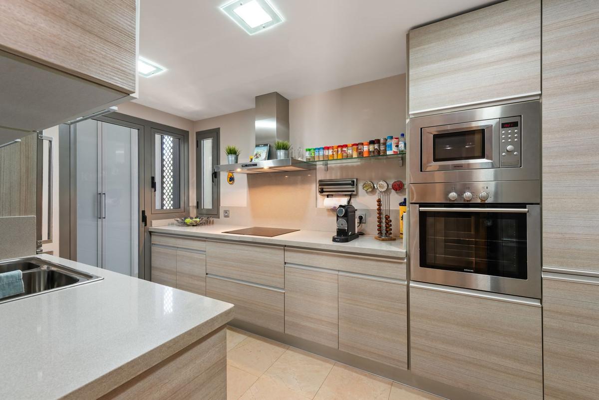 The fully equipped kitchen is sleek and highly functional, fitted with top-quality appliances and ample counter and storage spaceâideal for everyday use or entertaining guests.