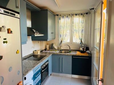 With a fully equipped closed kichen connected to a large shaded terrace for al fresco dining, as well as a dining area in the living room, this property never feels cramped. The living room is lovely - a worrking refurbished fireplace, a lovely large patio window/door bringing in the sea views, and a beautiful fron terrace to look out to sea.