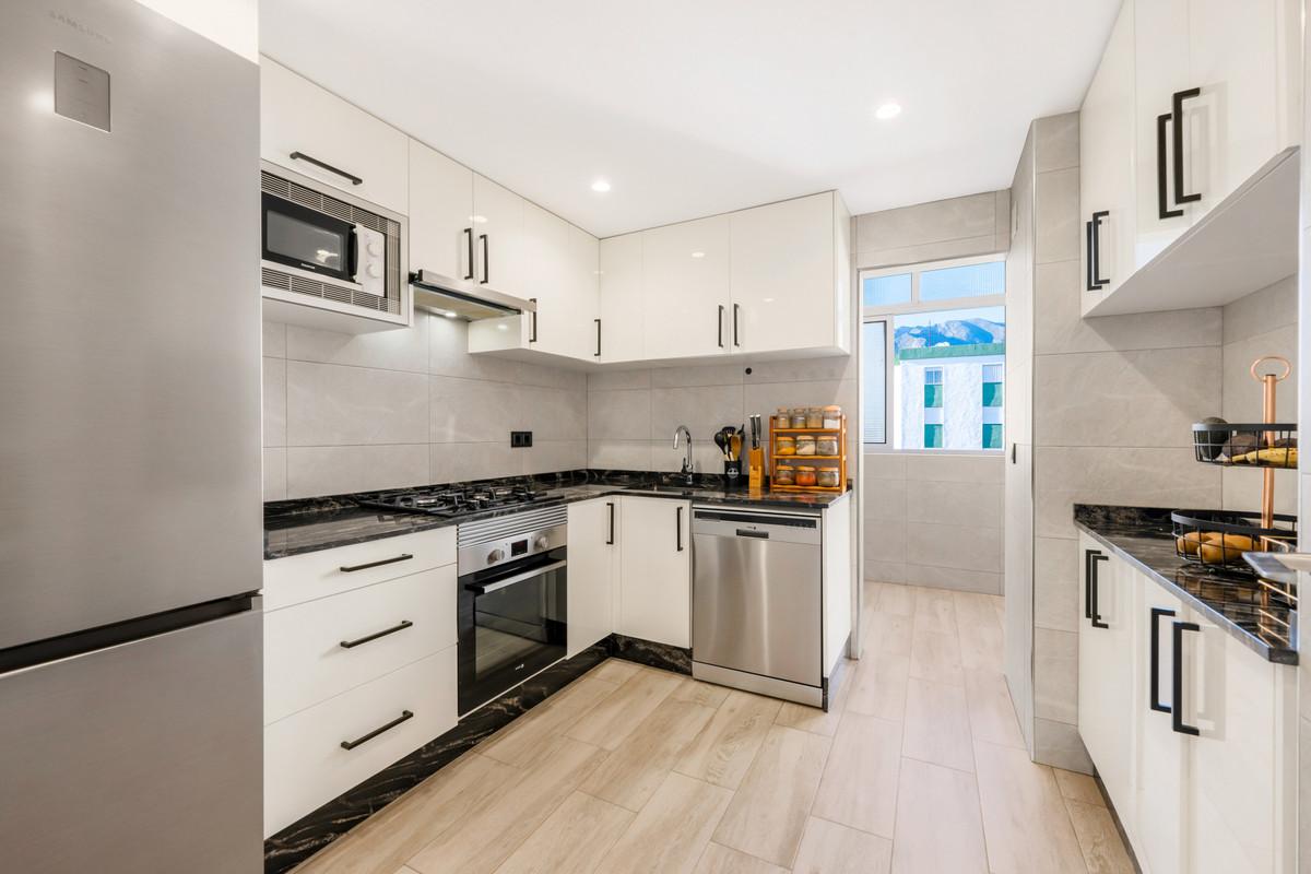 This beautifully updated 3-bedroom, 1-bathroom apartment sits on the top floor of the building, offering breathtaking panoramic sea views and pleasant partial mountain views. Its unbeatable location places you just 5 minutes from the beach and in... This beautifully updated 3-bedroom, 1-bathroom apartment sits on the top floor of the building, offering breathtaking panoramic sea views and pleasant partial mountain views. Its unbeatable location places you just 5 minutes from the beach and in Marbella Center making it an exceptional opportunity for both living and investment.
