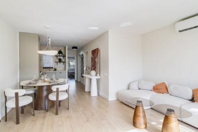 The apartment has been thoughtfully designed and furnished by a professional interior design company, combining elegant Mediterranean architectural elements with modern comfort and attention to detail.