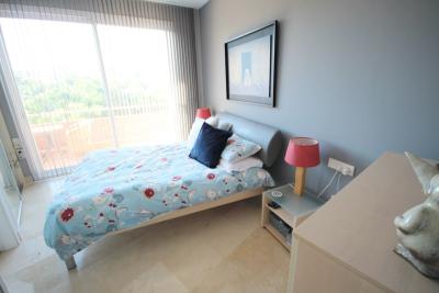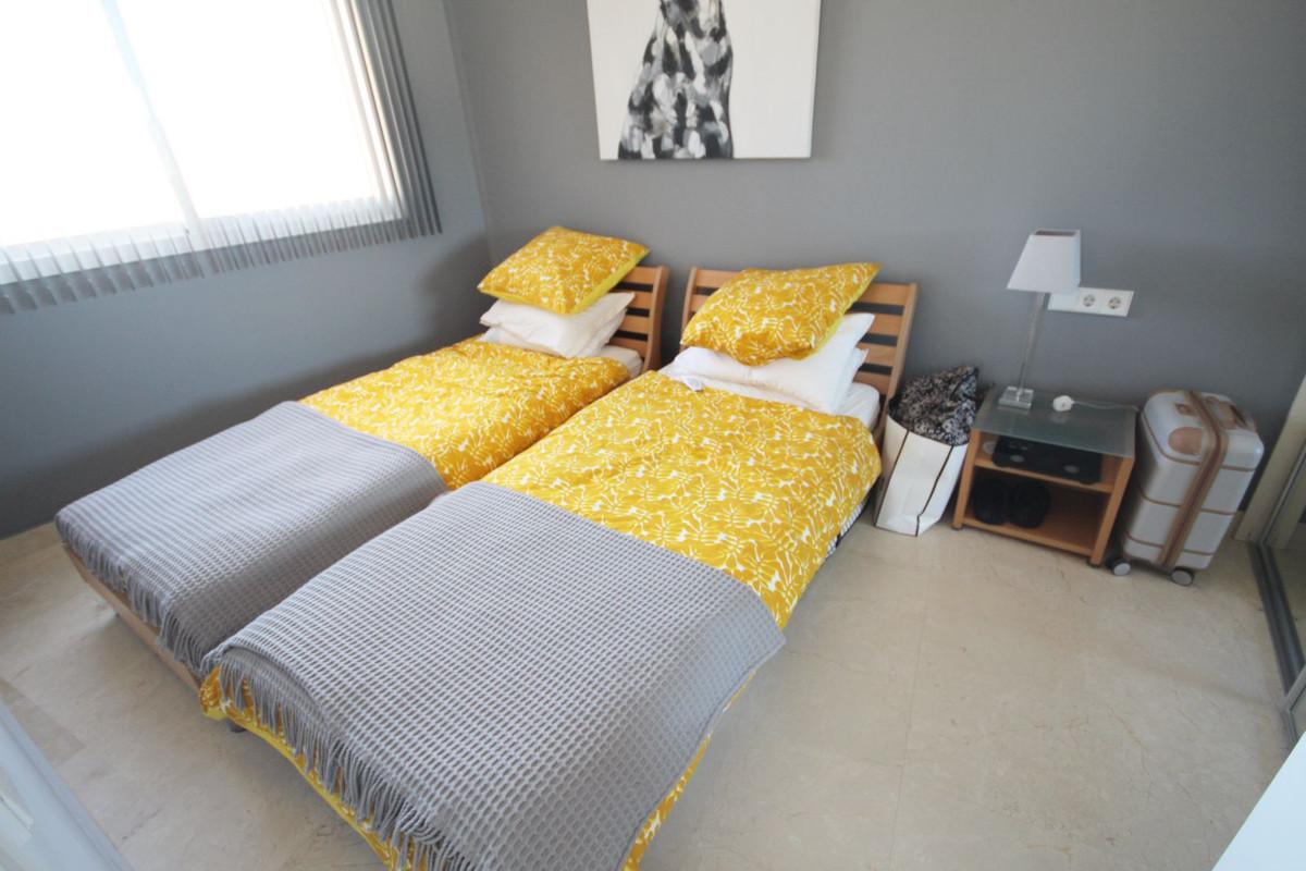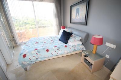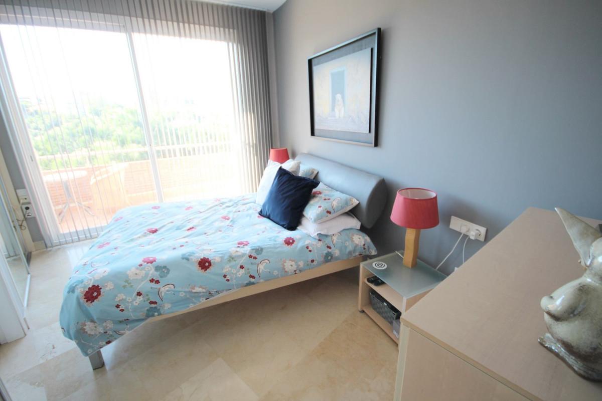 This bright unusually large 2 bedroom luxury, south facing penthouse is situated within the exclusive, beautifully kept, luxury complex in Riviera del Sol next to the prestigious Miraflores Golf Club House.The property consists of a very large... This bright unusually large 2 bedroom luxury, south facing penthouse is situated within the exclusive, beautifully kept, luxury complex in Riviera del Sol next to the prestigious Miraflores Golf Club House.The property consists of a very large lounge/diner, a fully fitted open plan kitchen, 2 double bedrooms, 2 bathrooms (one en-suite) and a large wrap around terrace which boasts lovely views of golf, mountains and the community gardens.The lounge boasts beautiful large floor to ceiling glass patio doors on 2 sides and the master bedroom has large mirrored fitted wardrobes as well as patio doors leading onto the terrace. This apartment is finished to a high standard, with marble flooring throughout, fully tiled marble bathroom, air con (H&C), video entry phone, Satellite TV, alarm etc. This peaceful complex has beautiful, very well maintained tropical gardens which includes a water / pond feature. It also has a large pool with bar prep area, a separate children's pool, a gymnasium and sauna. The apartment comes with underground parking space and storage.
