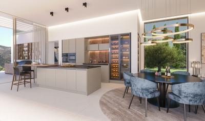 All brand new properties offer panoramic sea and mountain views, full privacy and high quality materials. They are distributed over 2 or 3 levels and feature 4 or 5 bedrooms, 4 or 5 bathrooms, 1 guest toilet, open plan fully fitted kitchen with Miele appliances and an additional back kitchen, covered and uncovered terraces, private swimming pool, landscaped Mediterranean garden with automatic irrigation system, outdoor area and carport or indoor garage. They also come with air conditioning H/C, underfloor heating throughout the property, elevator, double-glazing floor-to-ceiling windows, domotic system, video entry system, solar panels and pre-installation for an EV charging unit.