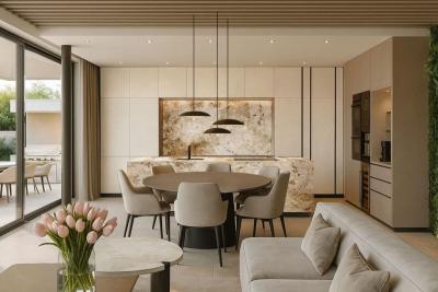 Designed to fully embrace the Mediterranean climate, the property combines modern architecture, privacy and spaces created both for relaxation and entertainment. Surrounded by private gardens, it features two swimming pools, generous outdoor areas ideal for year-round living, and a rooftop solarium designed as a private retreat for leisure and relaxation.