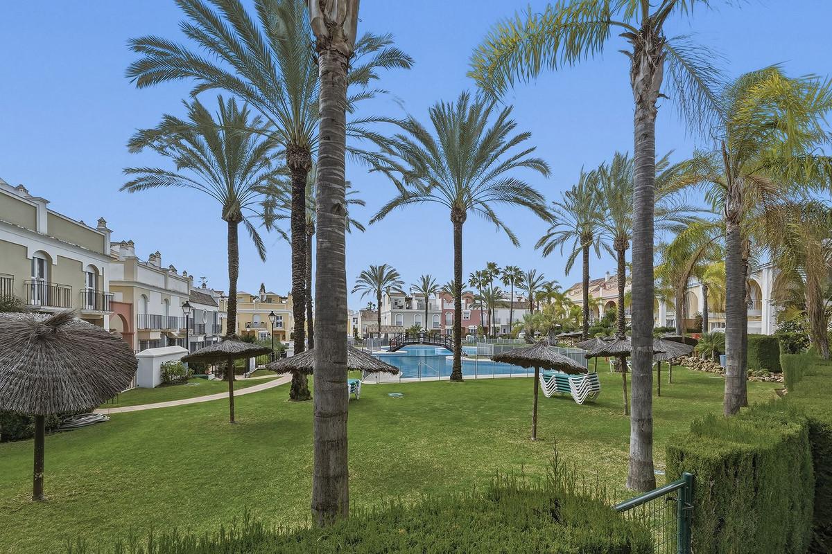 Nestled within one of BahÃa de Marbella's most sought-after beachfront urbanizations, this stunning townhouse offers an unparalleled coastal living experience. Imagine waking up to the sound of the waves and having direct, private access to the... Nestled within one of BahÃa de Marbella's most sought-after beachfront urbanizations, this stunning townhouse offers an unparalleled coastal living experience. Imagine waking up to the sound of the waves and having direct, private access to the golden sands of the beach just steps from your door. This exclusive community provides peace of mind with 24-hour security, ensuring a safe and serene environment for you and your family. The meticulously manicured lush gardens create a vibrant oasis, complemented by an extraordinarily large and beautiful swimming pool, perfect for leisurely dips on warm Mediterranean days.
