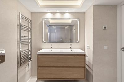 Bathrooms have been resolved with a contemporary and restrained approach, incorporating walk-in showers, refined fittings, and neutral textures. Storage solutions are integrated throughout the property, maintaining visual clarity while offering practical capacity.