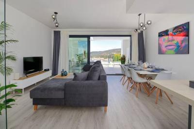 From the moment you arrive, you will be captivated by the brightness and openness of the living spaces. The large floor-to-ceiling windows of the open-plan living and dining area reveal an exceptional panorama, creating an atmosphere that is both elegant and welcoming.