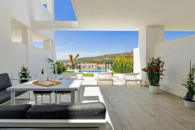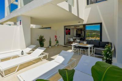 With 139 m² of living space, this property offers three spacious bedrooms, each with its own en-suite bathroom, as well as superb outdoor areas: sun-drenched terraces, a private garden, and a solarium with a unique vantage point over the sea and Gibraltar.
