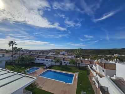 Entrance from the parking is on the lower level of the property. On the lower level you find two bedrooms and they both have an own en-suite bathroom. Two bedrooms are large and walk out onto a South-West facing terrace. There is a large communal pool; there is also a kid's pool. The communal pool area has got showers.