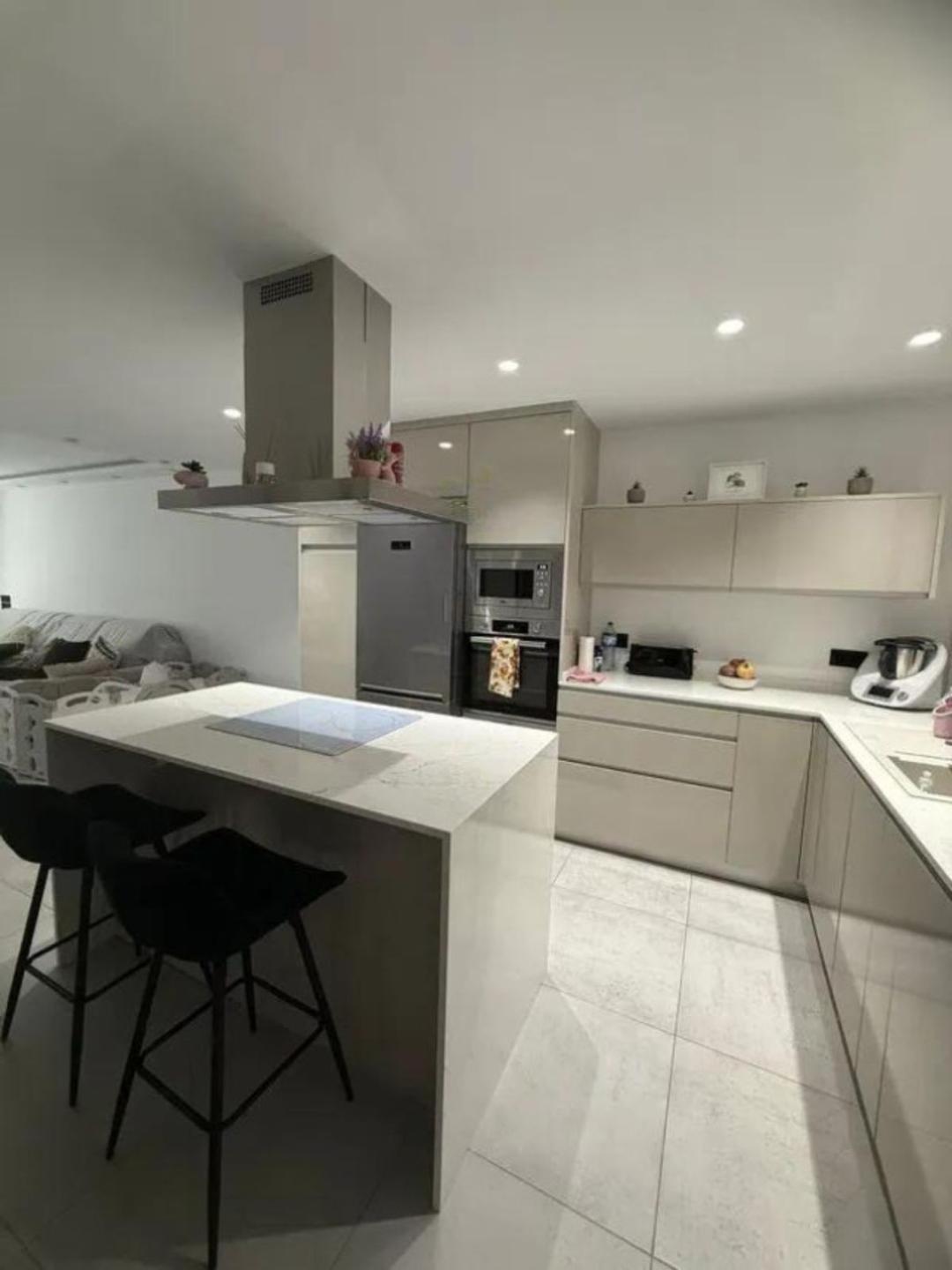 Ground floor open-plan kitchen opening onto the living room, toilet, and large terrace with a 2x3 meter saltwater pool, independent... corner house, with an independent pool.