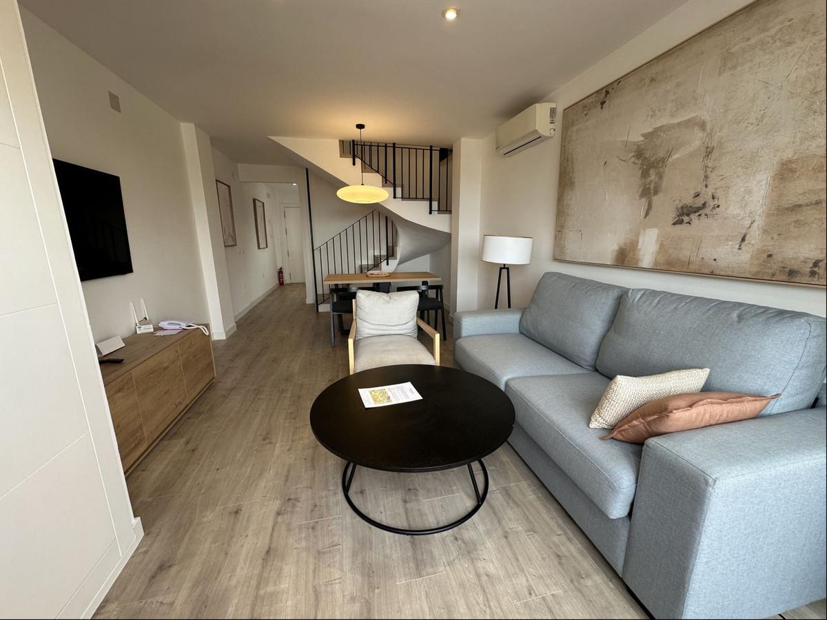 This townhouse with lovely views of the Mediterranean Sea is just steps away from the resort pools and one of the most beautiful beaches on the coast. The beachfront resort offers a wealth of activities and facilities, including a 24-hour reception, concierge services, 9 bars and restaurants, live entertainment, a kids club, communal pools, a kids pool and jacuzzi, beautifully maintained gardens, paddle/tennis courts, onsite medical facilities, resort transport links and a public taxi rank. The resort is incredibly close to La Cala de Mijas and Fuengirola, and a 20 minute drive to Marbella and 30 to Malaga. Recently fully renovated and sold with a modern furniture and decoration package.