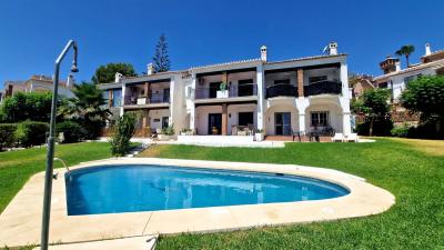 This beautifully presented townhouse is located in a small, exclusive urbanisation of just four homes, offering a peaceful setting with a communal pool surrounded by gardens and a private parking space for... Charming End-of-Terrace Townhouse in Mijas Golf