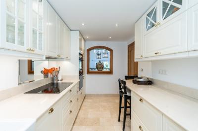 Beautiful townhouse in a small complex in Riviera del Sol in Mijas-Costa frontline Golf. The house offers on the main level a fully equipped modern kitchen, a guest toilet, storage, one bedroom with en-suite bathroom and a large dining and living room... Beautiful townhouse in a small complex in Riviera del Sol in Mijas-Costa frontline Golf. The house offers on the main level a fully equipped modern kitchen, a guest toilet, storage, one bedroom with en-suite bathroom and a large dining and living room with fireplace and with access to the private terrace with private garden. On the first floor there are two further bedrooms with en-suite bathrooms and a lovely summer terrace. There is also a roof terrace with sun all day. In the basement there is huge area that could be converted into a cinema, gym, more bedrooms, etc. In front of the house and in the complex there is a private parking space.