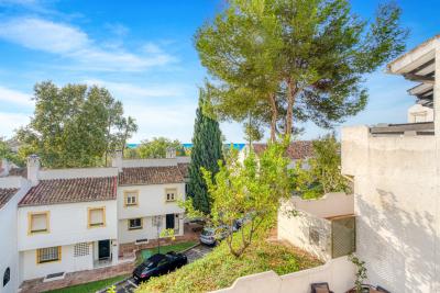 This lovely three-bedroom, south-facing townhouse is set in the sought-after gated community of El Capricho on Marbella's Golden Mile, offering spacious tropical gardens and two communal swimming pools. Ideally located within walking distance to... This lovely three-bedroom, south-facing townhouse is set in the sought-after gated community of El Capricho on Marbella's Golden Mile, offering spacious tropical gardens and two communal swimming pools. Ideally located within walking distance to the beach, bars, and restaurants, and just a short drive from Marbella Center and Puerto Banús, the property combines convenience with charm. The ground floor features a bright living and dining area with a fireplace and access to a generous terrace perfect for outdoor dining, a newly renovated separate kitchen, and a guest toilet. Stairs lead down to a large basement currently used as a bedroom and art studio with its own bathroom. Upstairs, the master suite is accompanied by two guest bedrooms and a family bathroom. Additional highlights include fitted wardrobes, marble floors, and private parking for one car.
