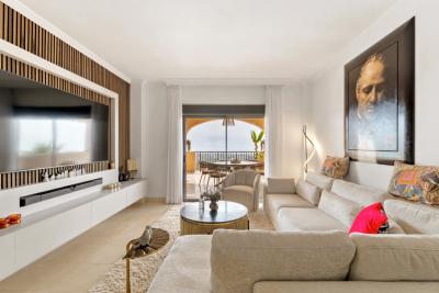 The apartment, fully renovated in 2024, features three bright bedrooms and two bathrooms, and has been designed to offer an elegant, modern, and highly functional living experience. The southeast-facing living room is spacious and filled with natural light, tastefully decorated, and seamlessly connected to a spectacular 44 m² covered terrace where you can enjoy unforgettable moments while taking in the open views of the mountain and the Mediterranean.