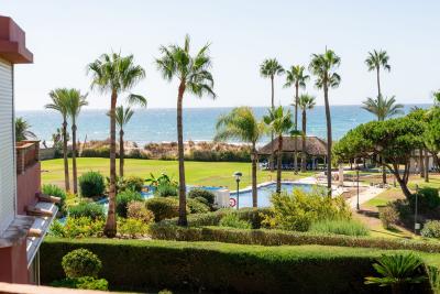 We offer a unique apartment in one of the best beachfront complexes in Elviria. This cozy, fully renovated two-bedroom apartment with a spacious living room and a panoramic terrace is a perfect choice for those who appreciate comfort and privacy. It... We offer a unique apartment in one of the best beachfront complexes in Elviria. This cozy, fully renovated two-bedroom apartment with a spacious living room and a panoramic terrace is a perfect choice for those who appreciate comfort and privacy. It features manicured gardens, a private tennis court, a swimming pool, a pond, and private access to some of Marbella's best beaches. The new kitchen is equipped with MIELE, NEFF, and LIEBHER appliances. New air conditioning system from DAIKIN. It also features a separate laundry room and dressing room. A spacious 25 m² storage room and a parking space are included.