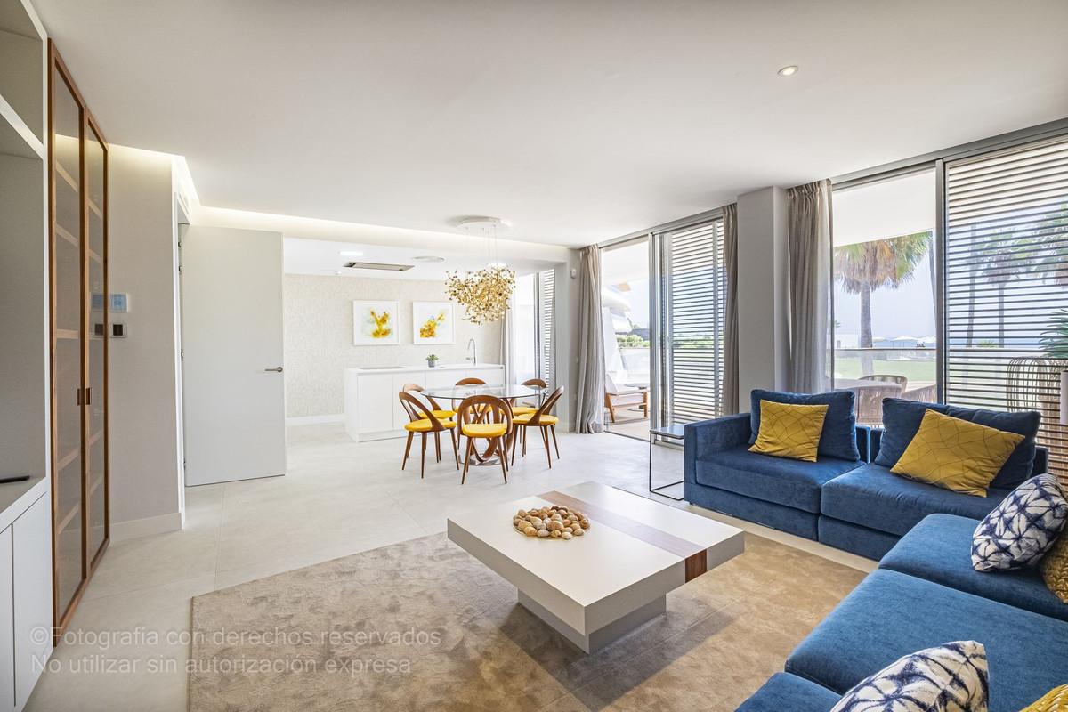 This sophisticated 3 bedroom... Magnificent opportunity to acquire one of the best apartments in the exclusive luxury development on the seafront in Estepona. With a full sea front location, it offers breathtaking panoramic views. Without any road noise.
