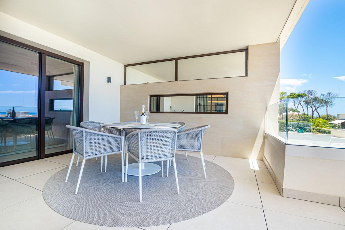 This is a perfect apartment by the sea, consisting of 2 bedrooms and 2 bathrooms, an open kitchen with an island, and a salon from where you can enjoy a magnificent view of the Mediterranean Sea. The sitting area and the master bedroom are connected to the 40m2 covered terrace. The apartment is located on the 1 floor, south facing. There is an underground garage and store room.