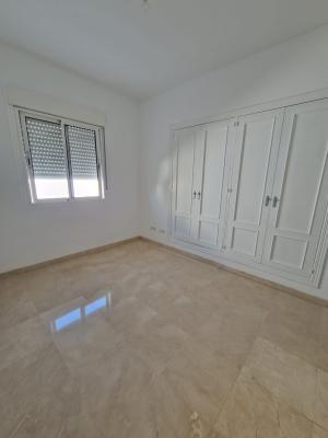 The apartment also includes a fully furnished kitchen, separate laundry room, an 8 m² terrace, elegant marble floors, and pre-installation for air conditioning. A private parking space is included, adding extra convenience in this central location.