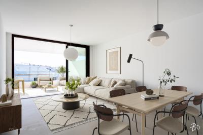 Located near the 5-star... This elegant second-floor apartment offers two double bedrooms, two full bathrooms, and a bright open-plan living space with sea views. It includes two underground parking spaces and a storage room for added convenience.