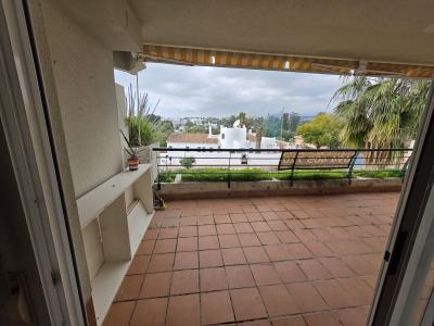 The property offers a spacious and bright entrance hall leading to the dining room and a spacious living room with direct access to a large terrace, with the possibility of glazing. It has two bedrooms, both with access to the terrace, and two bathrooms, one of which is en-suite in the master bedroom. The separate kitchen is fully equipped and has a window to the outside.