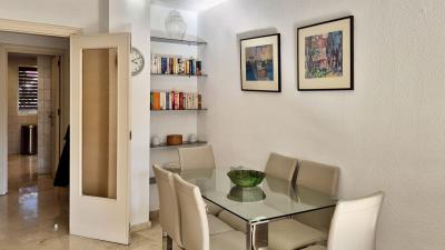 The bright living room offers an excellent space to enjoy both dining and relaxation by the TV. You can also step outside to a wonderful south-facing terrace that overlooks the pool, where you can enjoy al-fresco dining or evening drinks, whilst knowing that you have everything Marbella has to offer right at your doorstep. The kitchen is ample in size, and as a bonus, a gas stove connected via natural gas, which is perfect for those who enjoy cooking.