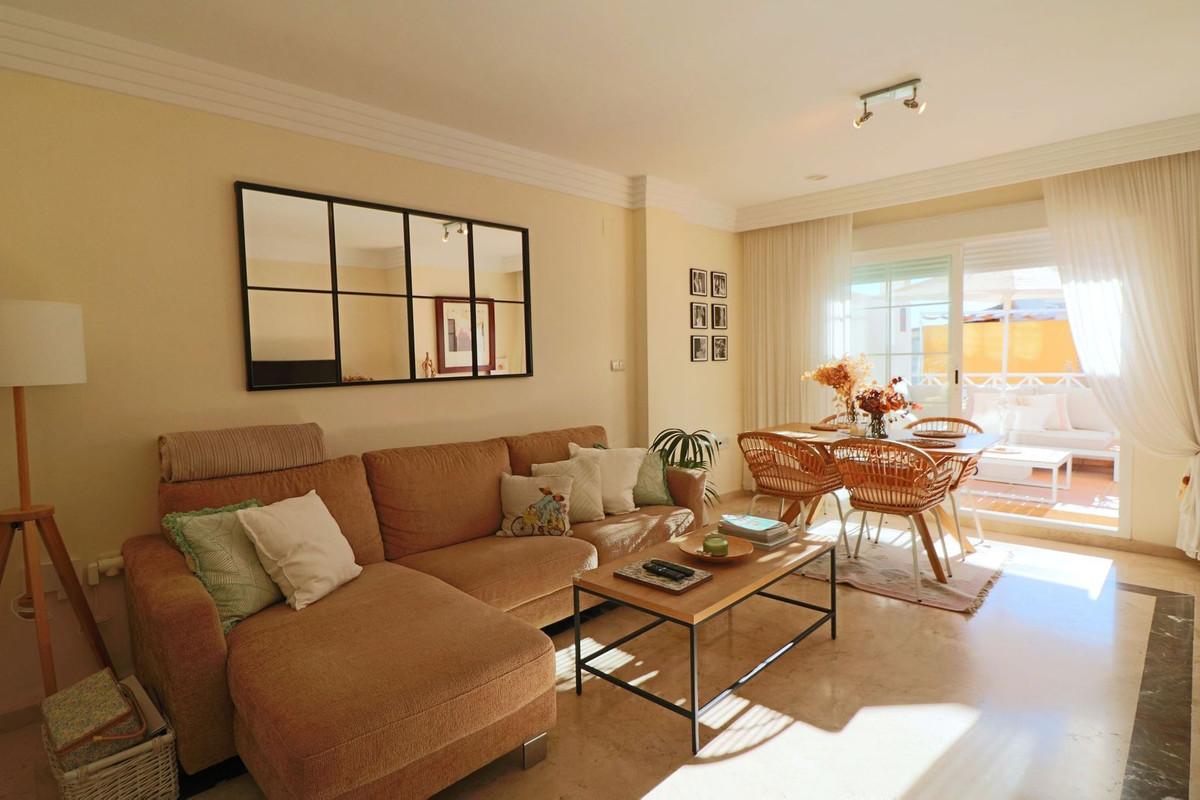 Magnificent southeast-facing two-bedroom apartment in Marbella, located in an exclusive private residential complex offering two swimming pools and spacious communal gardens, just a few steps from the beach and the RÃo Real golf course. This... Magnificent southeast-facing two-bedroom apartment in Marbella, located in an exclusive private residential complex offering two swimming pools and spacious communal gardens, just a few steps from the beach and the RÃo Real golf course. This property, located on an elevated first floor, stands out for its spacious terrace with pleasant views of the green areas. Inside, it is distributed in an entrance hall, a spacious living-dining room with direct access to the partially covered terrace, a large separate kitchen with access to a generous laundry terrace, two bedroomsâthe master bedroom being particularly spacious and bright thanks to a large windowâand a bathroom. It also includes a large storage room and a parking space.