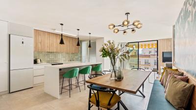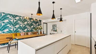 Upon entering the property, you are welcomed by an open-plan kitchen with dining area that flows seamlessly into the sunny terrace and lounge. The apartment includes three bedrooms and two bathrooms.