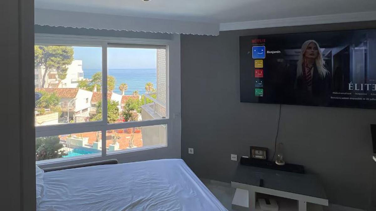 Beautiful, fully furnished and equipped studio apartment located in an iconic Marbella building, just steps from the beach in the town center and its promenade. South-facing, it has a total built area of ââ52 m². The layout includes an... Beautiful, fully furnished and equipped studio apartment located in an iconic Marbella building, just steps from the beach in the town center and its promenade. South-facing, it has a total built area of ââ52 m². The layout includes an entrance hall, separate bedroom, bathroom, fully furnished and equipped kitchen, and living/dining room. Enjoy stunning views of the sea, garden, and communal pool. Ideal as an investment, holiday home, or for those who prefer to be close to all amenities and the charm of Marbella. High-quality construction, air conditioning, concierge service, well-maintained common areas, and a beautiful garden with a communal pool. A select community of residents where tourist rental licenses are not granted.