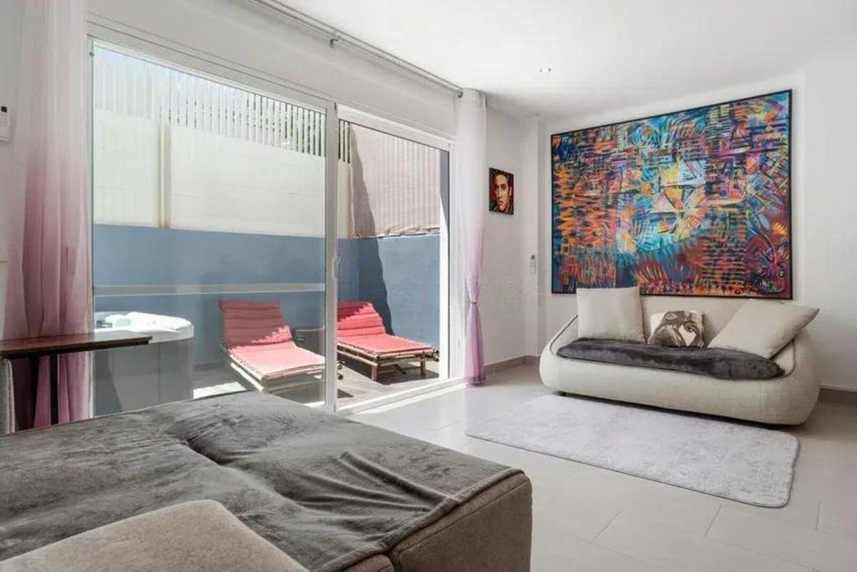It is a corner unit with only one direct neighbor, which offers greater privacy. The location is unbeatable, the whole center of Estepona is within walking distance, and the property is not subject to expensive community fees.